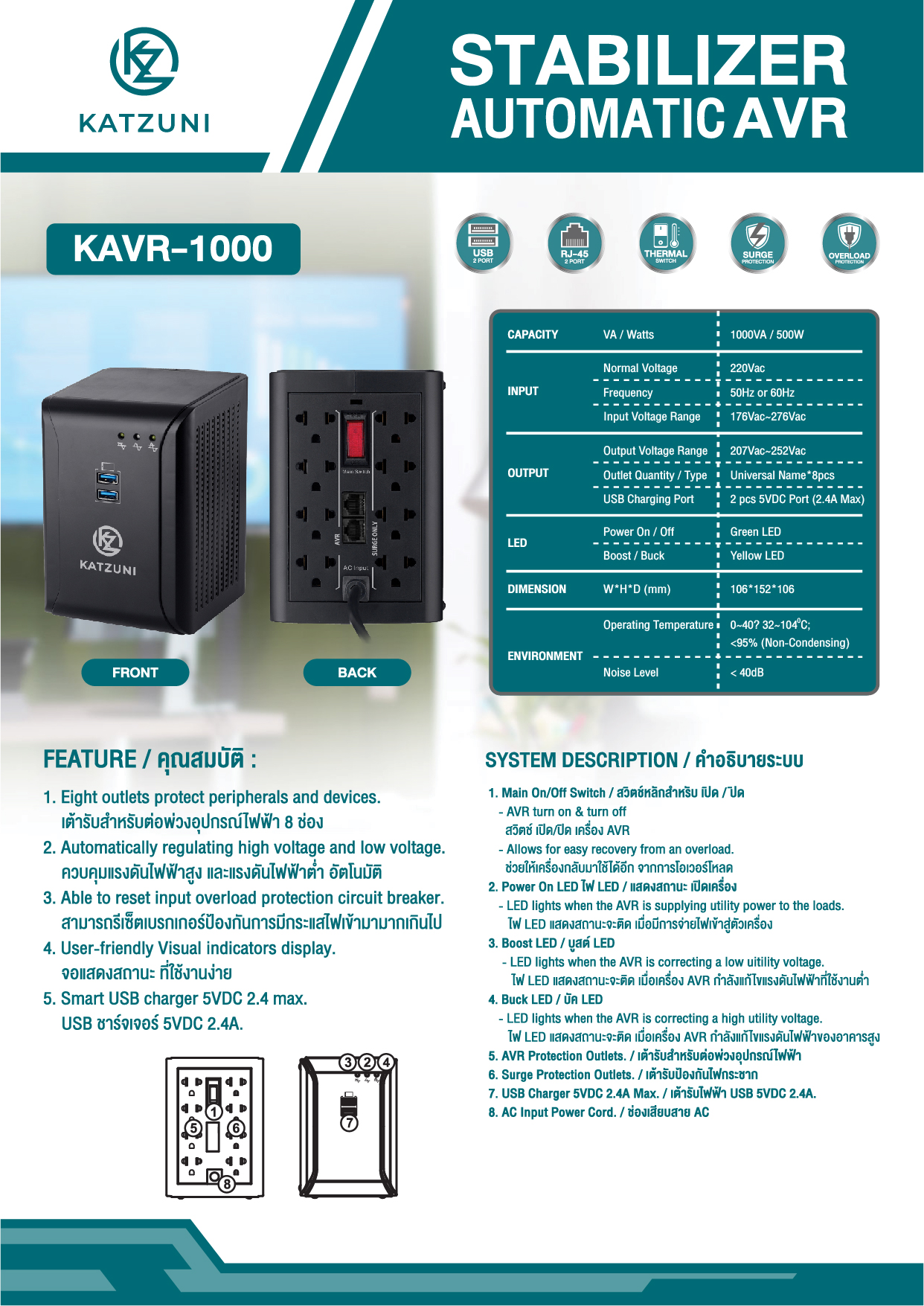 เครื่องปรับแรงดัน STABILIZER AUTOMATIC AVR รุ่น KAVR-1000